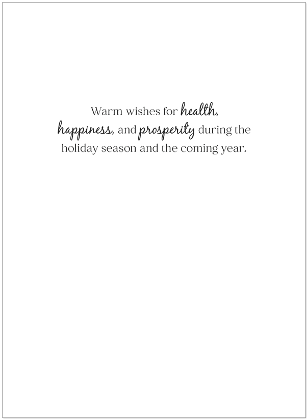 Interior Text: Warm wishes for health, happiness, and prosperity during the holiday season and the coming year.