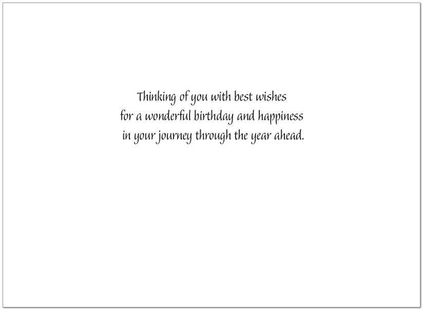 Interior Text: Thinking of you with best wishes for a wonderful birthday and happiness in your journey through the year ahead.