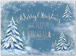 These snowy trees have a magical feel that is perfect for the holiday season. Featuring silver holographic foil embossing on matte FSC® paper.