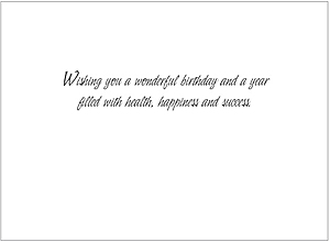 Interior Text: Wishing you a wonderful birthday and a year filled with health, happiness and success.