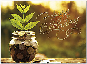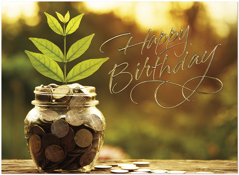 Send birthday wishes with this growing cash design featuring gold foil embossing. Printed on satin FSC® paper.