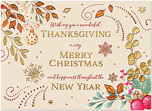 Exterior Text: Wishing you a wonderful Thanksgiving, a very Merry Christmas, and happiness throughout the New Year.
